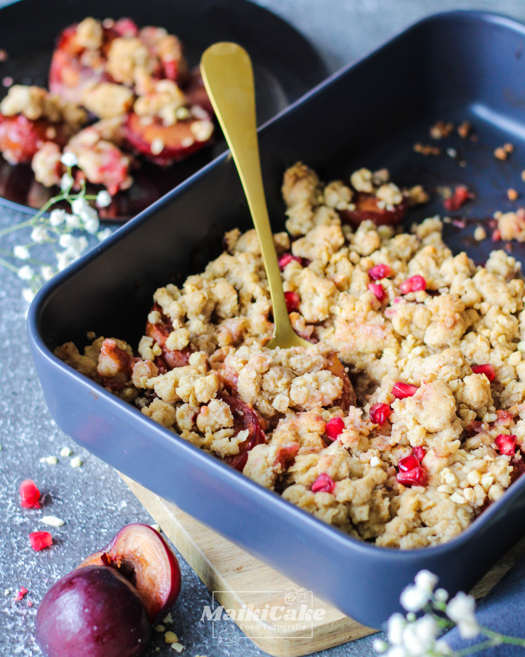 Ein warmes, frisches Pflaumen-Crumble ist mehr als nur ein Dessert, es ist eine Einladung zum Genießen und dabei die Seele baumeln zu lassen. Saftige, aromatische Pflaumen treffen auf knusprige Streusel und ergeben gemeinsam eine unwiderstehliche Kombination aus Süße und feiner Säure.